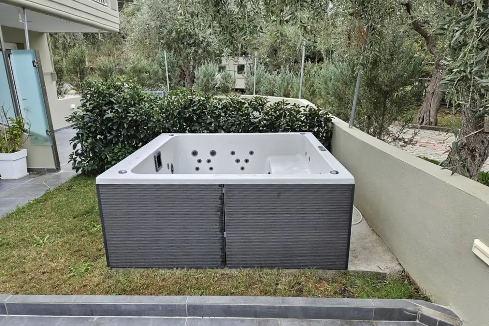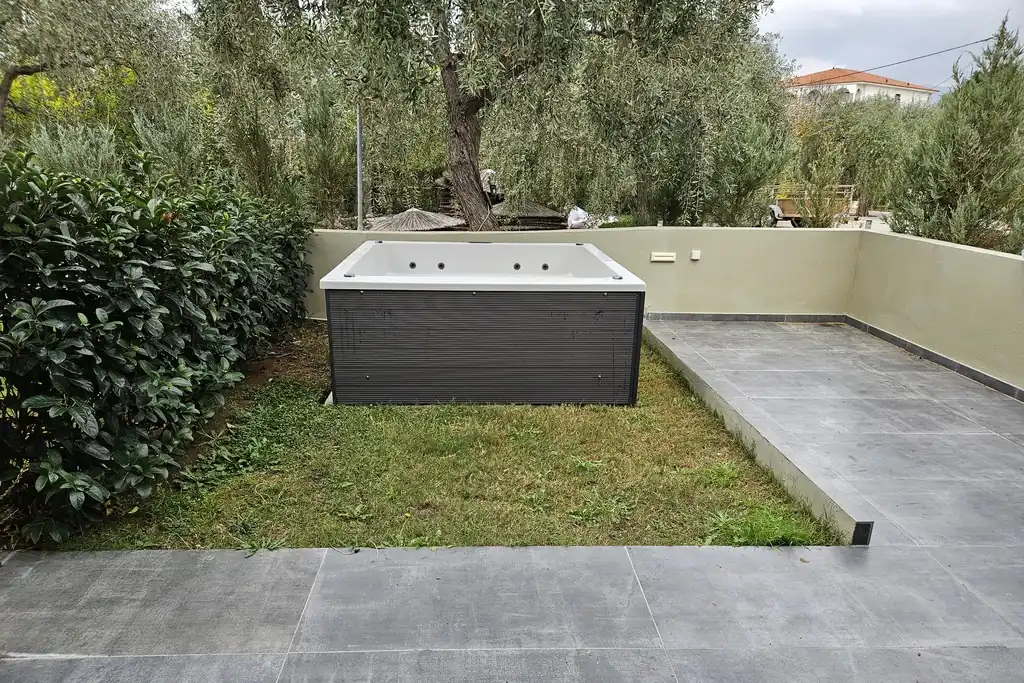 The Deluxe Suite has an open plan layout with a comfortable double bed but there is also a large corner sofa bed. The suite also has a fully equipped kitchenette with a fridge. It also has air conditioning, satellite TV, hairdryer, safe and all the necessary amenities that will make you feel at home. In addition, the ideal bathroom is spacious and modern. Finally, the suite has direct access to a furnished private garden. Ability to accommodate a family with two adults and 2 children maximum.