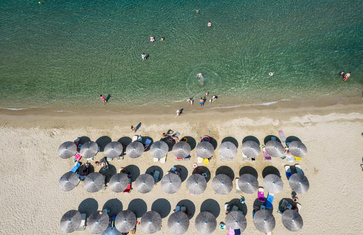 Beach umbrellas and sunbeds