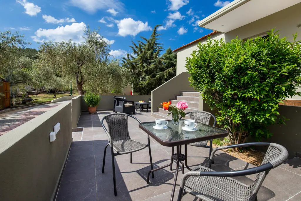 Small, family business that can rival with the big hospitality chains. Ioannis and his family are always there for you and are open to improve your stay and fix oopsies with your apartment. They have a beautiful garden around the bungalows and if you are booking an upper level apartment you can have a sea view above the olive trees over the Limenaria gulf. Westward orientation gives you some nice sunsets too, but only till you discover the two wonderful restaurants on the beach (San Antonio and Sea Breeze), both within walking distance. Should you prefer a more rustic taverna, then walk from San Antonio up to the main road and you'll find Klimateria under the grape vines.