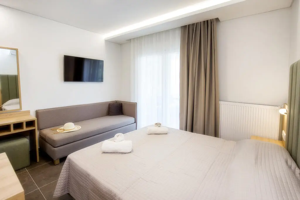 Με ένα μεγάλο διπλό κρεβάτι & έναν καναπέ-κρεβάτι